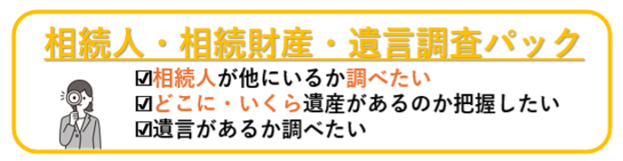 なお、当事務所では下記の内容を相続調査パックにて対応させていただいております。